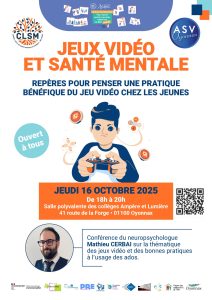 Conférence du neuropsychologue Mathieu CERBAI sur la thématique des jeux vidéo et des bonnes pratiques à l’usage des ados pour permettre de porter un autre regard sur les jeux vidéos.